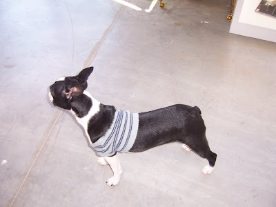 The guard dog Napoleon! Look at his little sweater! Awwwww!