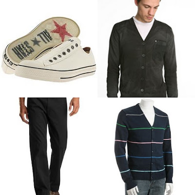 …by donning cardigans, straight legged pants, and colorful shirts. The look seems very 1970’s, but you can bring it to the ’07 with sporty sneakers and untucked shirt tails (cardigan mandatory). Try these items to get the look: