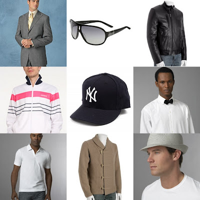 Top Row: Sean John Grey Sharkskin Suit Separates, $125-$350, www.macys.com; Diesel Large Oval Sunglasses, $140, www.nordstrom.com; Theory Black leather ‘Falcon.Cervocow Gran’ Zip Jacket, $537, www.bluefly.com.