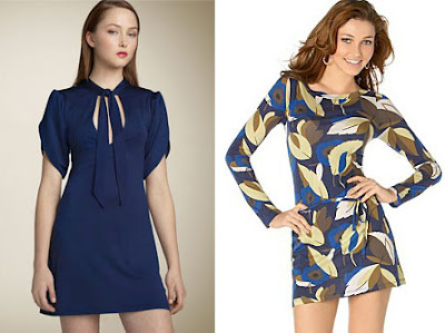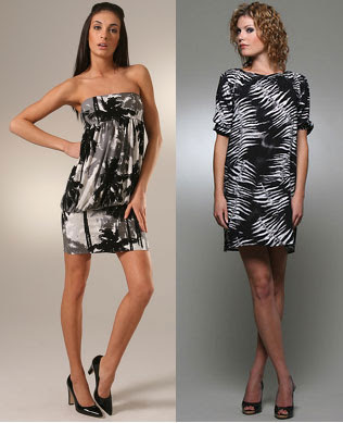 LaROK ‘Billies’ Jersey Dance Dress, $139, www.nordstrom.com; French Connection Leaf-Print Tunic/Dress, $98, www.macys.com