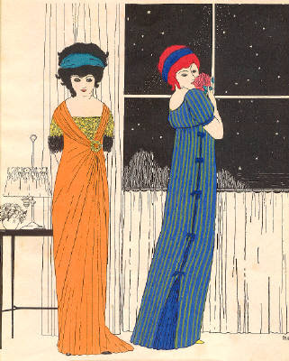 Poiret called himself “The King of Fashion” (kinda like T.I. called himself the King of the South). Poiret’s most noted for eschewing what was then traditional boning, corsets, and petticoats in favor of long flowing Greek and Eastern inspired gowns characterized by lots of embellishments, sequins, trimmings, and vibrant colors. He was the antithesis to Coco Chanel at the time (whose more simple designs were all the rage). He apparently once said about Chanel, “What has she created? Poverty de luxe,” and also called her ‘garconne’ look, “Sterile and Muttonish.” We always like a great fashion catfight, don’t we?