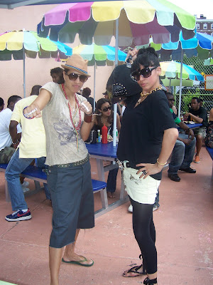 ..and knew that just had to be on the Fashion Bomb. I was seduced by their rock star sunglasses, fashionably excessive accessories, and one of a kind ‘fits. Also loved homegirl on the left’s silver knuckle rings (she’s actually the brains behind them, check her out at www.myspace.com/B3nyc), and the young lady on the right’s fly Cadillac bag. I think I’m gonna need one of those. Soon.