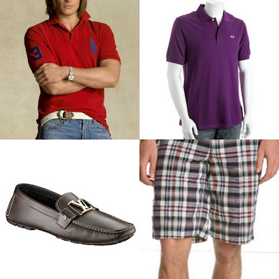 Top Row:Classic Vintage Big Pony Polo, $90, www.polo.com; Le Tigre Purple Cotton Pique Polo, $29, www.bluefly.com.