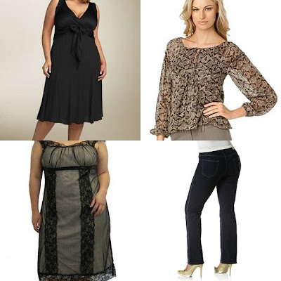 Bottom Row: Queen Puff Sleeve Lace Dress, $58, www.sizeappeal.com; River Wash Signature Jean, $64, BabyPhat.com