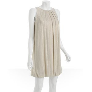 A.B.S. gold pleated knit bubble trapeze dress, $189, www.bluefly.com.