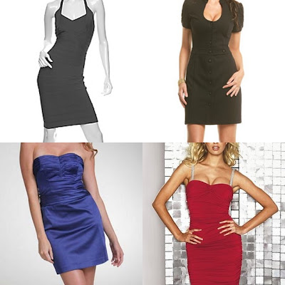 Bottom Row: Sweetheart Tube Pencil Dress, $148, www.ardenb.com; Curvy jersey rhinestone dress, $119, www.victoriassecret.com.