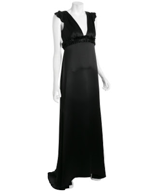 Elita went on a search for a similar VW dress, and came upon this $380 black satin pleated flutter v-neck dress…