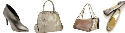 BCBGirls Tate Bootie, $128.95, www.nordstrom.com; Big Buddha Uptown Bag, $85, www.ebags.com; Whiting + Davis Sleek Shoulder Bag, $75,www.nordstrom.com; Michael by Michael Kors Francesca Ballet Flat, $109, www.bloomingdales.com.