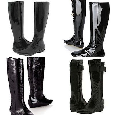 Bottom Row: Delman “Kimana” Tall Patent Leather Boot, $495, www.bloomingdales.com; Nine West Darkside Boots, $193, Zappos.com