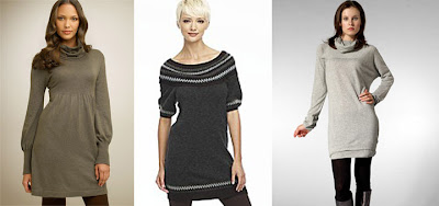 Left to Right:Kensie Turtleneck Dress, $88, www.nordstrom.com; BCBG Fair Isle Sweater Dress, $118, www.bloomingdales.com; Trovata Barrett French Terry Dress in Marathon Grey, $133, www.revolveclothing.com.