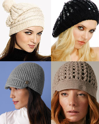 Top Row: Badgley Mischka Hat, $55, www.bloomingdales.com; Sequined Knit Beret, $49, www.bebe.com.