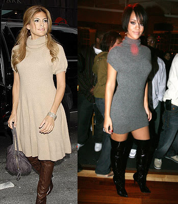 Slip on a cute sweater dress like Eva or Rihanna…