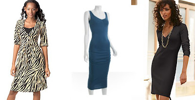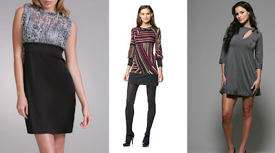 …that grazes the knees. These dresses work. Left to Right: Style & Co Printed Dress, $69, www.macys.com; Lotta Stensson Blue Shirred Jersey Dress, $72, www.bluefly.com; Silk Sweater Dress, $75, www.victoriassecret.com.