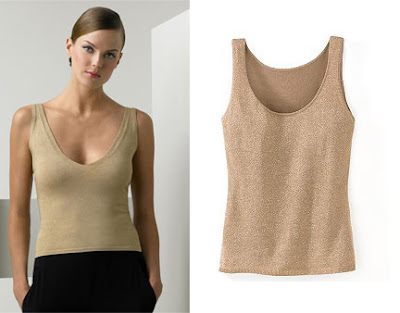 Left to Right: Donna Karen Collector Shimmering Tank, $495, www.nordstrom.com; Metallic Tank Top, $24, www.spiegel.com.