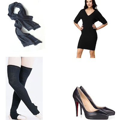 Bottom Row: 48″ Stirrup Leg Warmers, $10, www.shop.com; Christian Louboutin Gwenissima Black pumps, $680, www.net-a-porter.com.