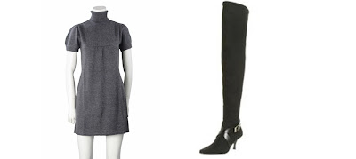 Left to Right: Acrobat – Turtleneck Sweater Dress in Charcoal, $167, www.coco-delilah.com; Donald J Pliner Women’s Leon Boots, $400, www.endless.com.