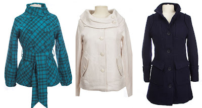 Left to Right: Twiggy Knit Coat, $199; Marzipan Coat, $80; Midnight Rendez Vouz Coat, $125.