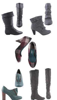 Bottom Row: Library School Heels, $75; The Beatnik Boots, $109 .