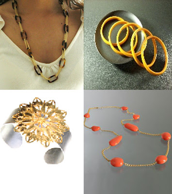 Top Row: Tortoise Link Necklace, $68,www.oohboutique.com; Everday Bangles, $9, www.boutiquefinesse.com.