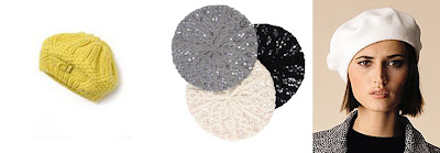 Left to Right: Cableknit Beret, $38,www.anthropologie.com; Ready & Cable Beret, $38, www.kennethcole.com; Kokin Orchiila Beret, $125,www.bloomingdales.com.