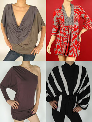 Top Row: Kimono Sleeved Colorblock Top, $35; Red and Grey Tunic, $50.