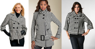Left to Right: Belted Houndstooth Coat, $178, www.talbots.com; Soia & Kyo Belted Houndstooth Wool Coat, $330, www.nordstrom.com; Paper, Denim & Cloth Jackie O Jacket in Houndstooth, $149, www.revolveclothing.com.