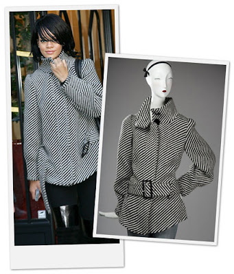 Next, Ingrid says, “I love this coat that Rihanna is wearing and have also been looking around for a great belted houndstooth coat.”