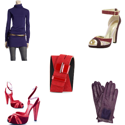Bottom Row: Giambatista Valli Velvet Platform Ankle-Wrap Heels, $775, www.ronherman.com; Portolano Aubergine Leather Suede Inset Gloves, $78, www.bluefly.com.