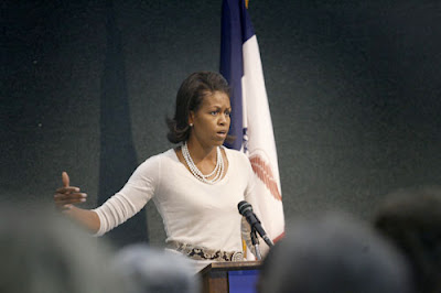 Michelle’s Style can best be described as conservative chic. On most occasions, she favors knee length sheath dresses…