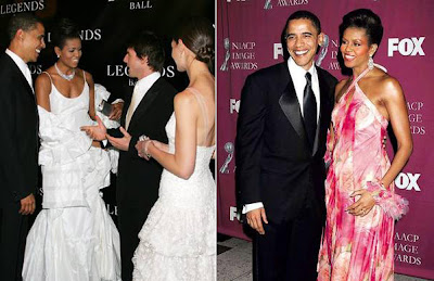 While her position calls her to cover it up, Michelle isn’t always buttoned to the hilt! When she goes glam, she does so in floor length strapless gowns in colors that favor her skin tone…