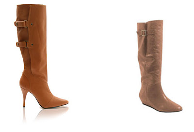 Left to Right: Asos Side Strapped Boot, $80, www.asos.com; Intyce Cognac Leather Boots, $200, www.stevemadden.com.