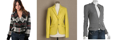 Left to Right: Triple Five Soul Wool Camden Blazer, $150, www.urbn.com; Solid Lexington Jacket, $80, www.jcrew.com; Fashionista Heather Grey Stretch Cotton Blazer, $119, www.bluefly.com.
