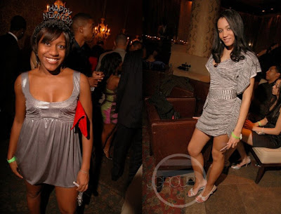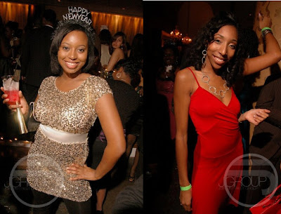 …. in a Diane von Furstenberg strapless number, vintage gold jewels, vintage snakeskin purse (from Miami), neon yellow nails, and a purple ‘Happy New Year’ issue headband (the neon green bracelet on my wrist is the armband for the party). I’ll be honest, Fashionista of the year Rihanna inspired this look…