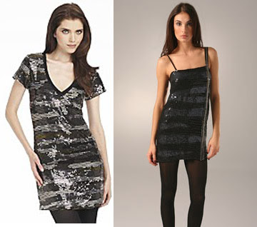 Left to Right: LaRok Zebra Serengeti Sequin Tunic, $172, www.bloomingdales.com; Foley + Corinna Zebra Sequin Dress, $385, shopbop.com
