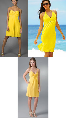 Top Row: Yellow Georgette Dress, $275, www.edressme.com; Ruched Halter Bra Top Dress, $38, www.victoriassecret.com.