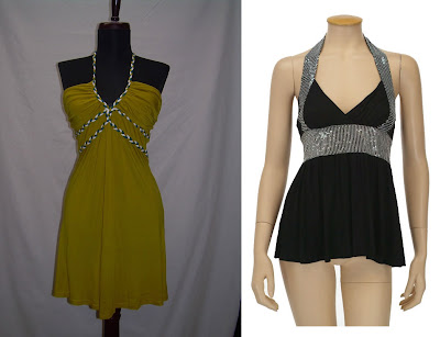 Mustard Halter Top, $15; Sequin Trim Halter, $20.