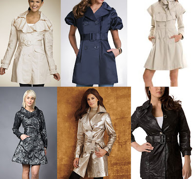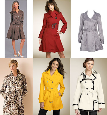 Top Row: Three Season Trench Coat, $75, www.edressme.com; Soia & Kyo Asymmetrical Trench Coat, $265, www.nordstrom.com; Belted Trench Coat, $37.80, www.forever21.com.