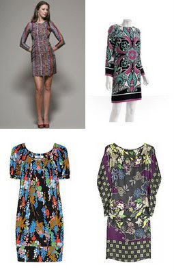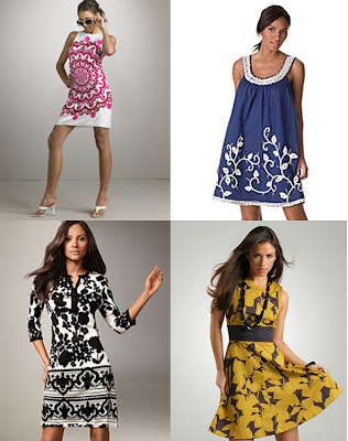 Top Row:Milly Margarita Floral Shift Dress, $340, www.neimanmarcus.com; Joolay Cotton Dress, $92, www.bloomingdales.com.Bottom Row: Chetta B Tunic Dress, $250, www.neimanmarcus.com; French Connection Fit & Flare Mini Dress, $140, www.asos.com.