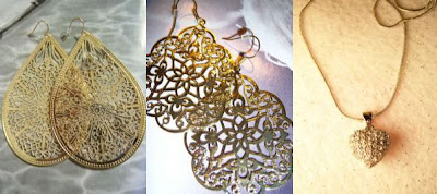 Left to right: Drop Earrings, $21; Diva Earrings, $25; Love Unlimited Necklace, $29.