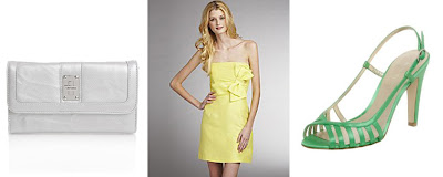 Left to Right: Erin Checkbook Clutch, $29.80, www.gbyguess.com; Plenty by Tracy Reese Strapless Silk Hannah Dress, $230, www.bloomingdales.com; Nine West Women’s Solelyn Sandal, $80, www.endless.com.