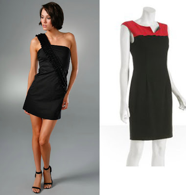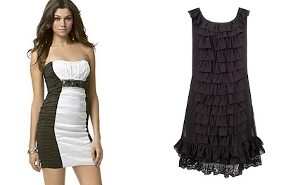 Left to Right: BCBGMax Azria Strapless Beaded Taffeta Dress, $240, www.macys.com; Ruffled Shift Dress, $24.81, www.forever21.com.