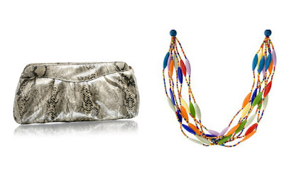 Left to Right: Oversized Snake Print Clutch, $26.41, www.asos.com; BA Necklace, $15, www.target.com.