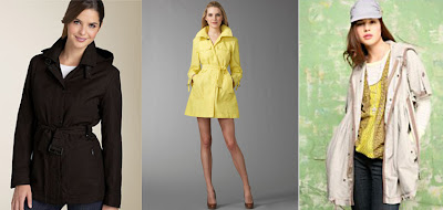 Left to Right: Gallery Short Trench Coat, $118, www.nordstrom.com; Elie Tahari Brenna Hooded Coat, $268, www.saks.com; Hooded Trench, $100, www.freepeople.com.