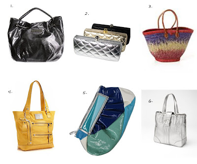 1. Blanca Snake Tote, $79, www.bebe.com. 2. Sondra Roberts Metallic Clutch, $75, www.shopkitson.com. 3. Ombre Tote, $78, www.anthropologie.com. 4. Tignanello Tech Tote, $89, www.macys.com. 5. Melie Blanco Graphic Clutch, $68, www.shopkitson.com. 6. Bombe Tote, $99, www.anntaylor.com.