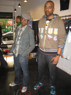Of course some guys swung by for the celebration of the men’s store! These young men represented the online mag YRB (www.yrbmagazine.com) and came thru sporting a Pieces collection hoodie on the right, and a vest, jacket and jeans accessorized with a hat and glasses on the left.