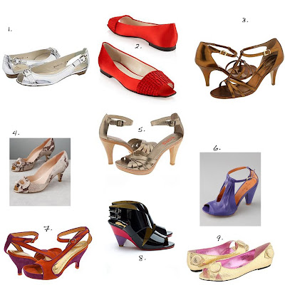 1. Stuart Weitzman Specchio Shoes, $188, zappos.com 2. Fendi Satin Ruffle Flat, $450, www.eluxury.com. 3. Christian Michael Ahmed Sandal, $240, zappos.com 4. Loeffler Randal May Open Ruffle Pump, $430, shopbop.com 5. Michael Kors Magic Sandals, $188, zappos.com 6. Coclico Shoes Keyhole Sandal, $320, shopbop.com 7. Irregular Choice Sexy Vixen Shoes, $129, zappos.com 8. Chloe Patent Crisscross Buckle Sandals, $645, wwwintermixonline.com. 9. Naughty Monkey Button Up, $69, zappos.com