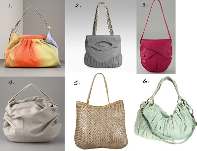1.Fendi Rainbow Degrade Hobo, $1,840. 2. Zac Posen Lily Shoulder Bag, $1,050. 3. Kale Stella Bag, $475. 4. Dautore Slouchy Shoulder Bag, $471. 5. Forever 21 Sequin Weave Tote Bag, $39.80. 6. Deux Lux Pintuck Satchel, $68.