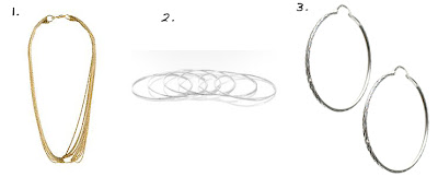 1. Les Prairies de Paris L’impromptu Choker, $210. 2. Argento Vivo 6 Hammered Sterling Bangles, $72. 3. ASOS Sterling Silver Diamond Cut Hoops, $25.