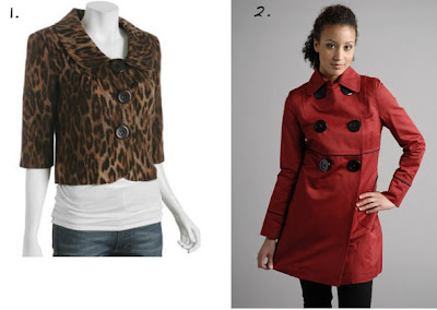 1.Fashionista Brown Cropped Jacket, $180. 2. Soia & Kyo Cotton Belle Empire Jacket, $235.