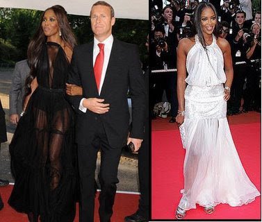 Naomi Campbell shows off her gams in black and white Dolce & Gabbana….